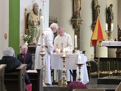 In de Viering van 10.30 uur zijn de namen van deze 23 geliefden een voor een voorgelezen. Bij het noemen van de naam werd een kaars voor hem of haar aangestoken. Een persoonlijke kaars, met de naam erop geschreven. Zo werden zij in gebed en stilte in het licht gezet. Tijdens de Viering was er zang door het Verrijzeniskoor. En pastoor Geertjan van Rossem sprak warme woorden in zijn overweging.