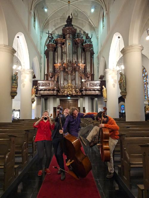 Het kwartet bestond uit Berry van Berkum (orgel), Steven Kamperman (klarinet), Dion Nijland (contrabas) en Pau Masafrets (cello). De eerste drie genoemden vormen samen HOT (Het Orgel Trio). Voeg bij deze muzikanten van hoogste niveau een cellist van hoogste niveau en het geheel wordt zelfs tot viervoudig subliem. En wij mochten hen ontvangen. Hoe gaaf was dat! In de basiliek, met het authentieke Smitsorgel en in Boxtel’ die tijdens het concert nog geroemd werden door een van de musici als zijnde “Het geweldige orgel in Boxtel, het centrum van de wereld”.