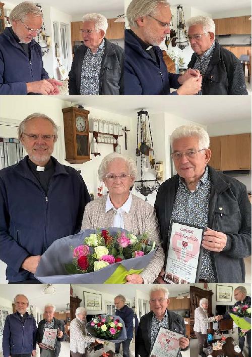 Kees was een van de gegadigden om een Heilig Hartspeld in ontvangst te nemen, een bronzen. Omdat hij op de vrijwilligersdag, 27 september jl. verhinderd was, togen pastoor Geertjan van Rossem en Jo Custers op vrijdagmiddag 17 oktober naar zijn huisadres om de spel alsnog uit te reiken.